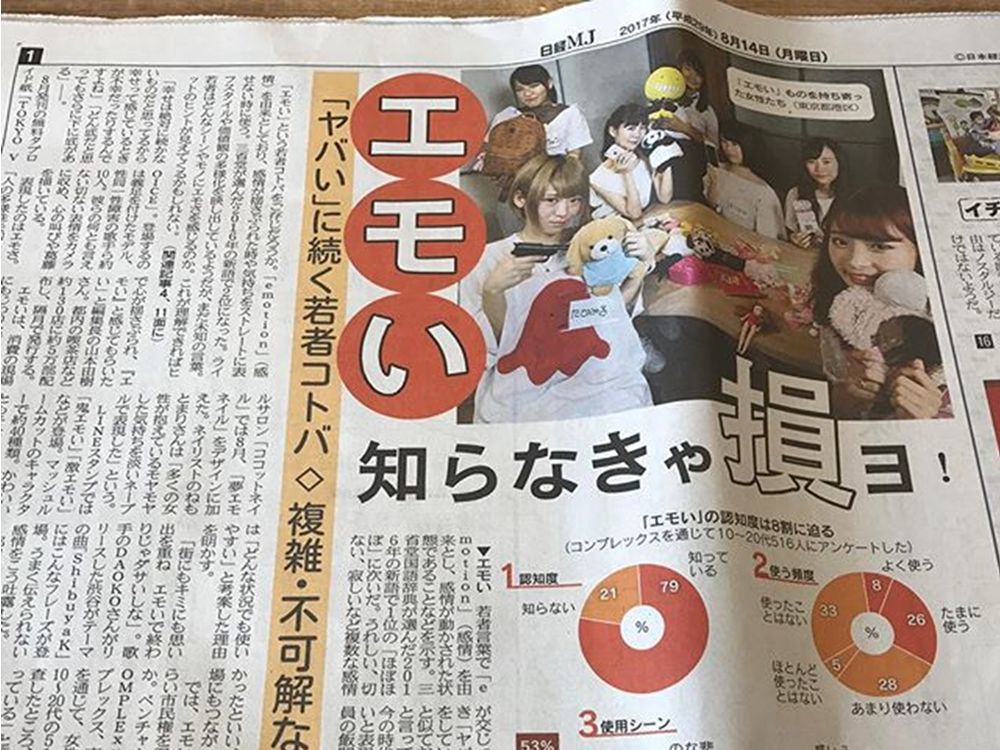 10代~20代にはかなり浸透しているそうですが、「エモーション(感情)」が変化した言葉で、「論理的にでは説明できないけど、感情が動かされる」という感じで、幅広く使われています。